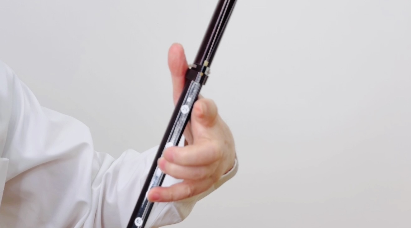 親指で棹をやさしく支え、